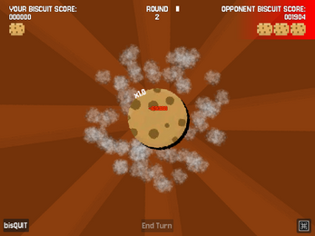 Click the biscuit to get points, but don't be greedy! Every time you click there is a chance the cookie explodes!